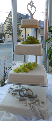 Das Toping ist die Brautpaarfigur, welche auf der Torte tront.
