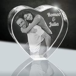 3Dglas Glasherz mit Wunschfoto | Herz 80mm 2D Gravur von deinem Foto | Kristall Fotogeschenk zum Jahrestag |