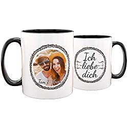 Personello® Tasse mit Foto und Text (Name und Spruch) selbst gestalten, Tasse schwarz, Fototasse bedrucken lassen |