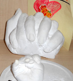 Familienhand- Abformungen, Hand vom Baby , Haende vom Brautpaar