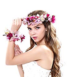 Ever Fairy® Frauen Mädchen Blumen Kranz Krone Blumen Girlande Stirnband Handgelenk Band Set für Hochzeit