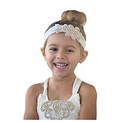 Peng sounded Boutique Kinder Haar Schleife Hochzeit Frisur Perle Crystal Hair Band Braut Frisur und Braut Frisur Haarbögen für Babyhaarbögen Babyzubehör (Farbe : Gold)