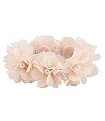SIX Haarschmuck: Elastisches Haargummi mit apricotfarbene Textil-Blüten und Perlen, perfekt für Dutt-Frisuren, für Hochzeit/Ballett/festlich (485-215)