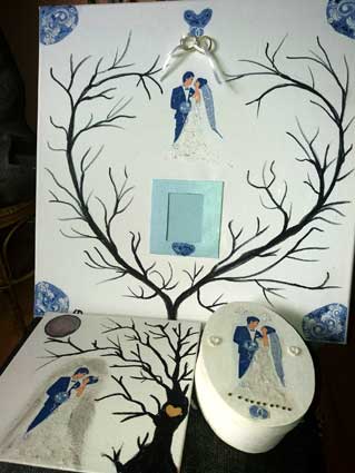 40 x 60 cm mit gemaltem Hochzeitsbaum, verschiedene Farben,