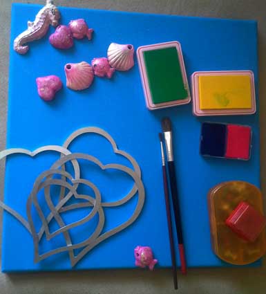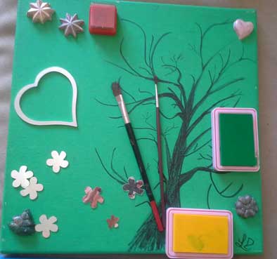 Oder ein Vogelhaeuschen mit Farben, Figuren,Stempel